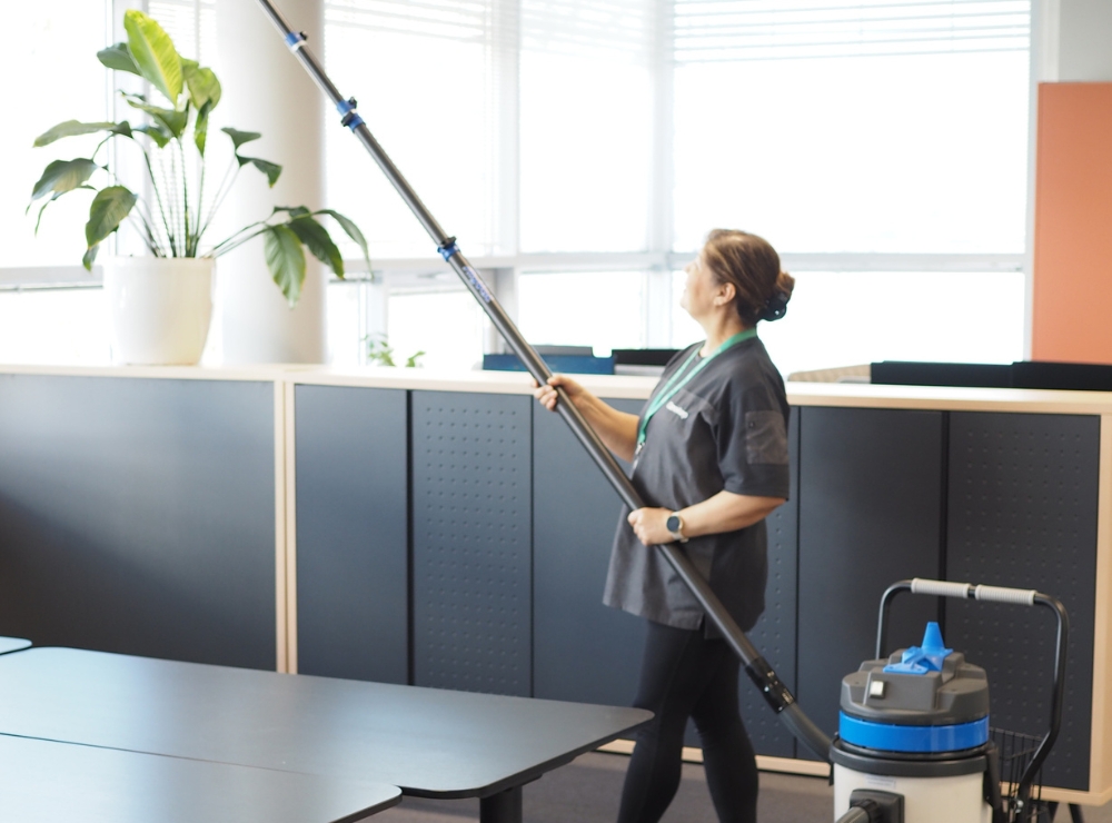 Out of sight, out of mind? Not really! Dust, or dust that accumulates on top of high cupboards or ceiling lights, for example, deteriorates indoor air quality. That is why regular cleaning of high surfaces is important.